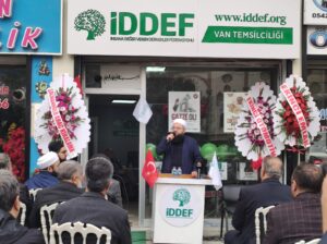 Açılışta konuşan İDDEF Başkan Yardımcısı Sinan Aktaş, derneğin misyonunu vurgularken, “Bugün, İDDEF’in 41. şubesini güzel şehrimiz Van’da açmanın mutluluğunu yaşıyoruz. Burada bizleri yalnız bırakmadığınız için başta camiamız ve çalışanlarımız adına teşekkür ediyorum. Rabbim, bu şubenin açılmasını hayırlara vesile eylesin. Bizlere göre, bizler biriz ve birbirimizi ayırmaya kimsenin gücü yetmeyecek” dedi.