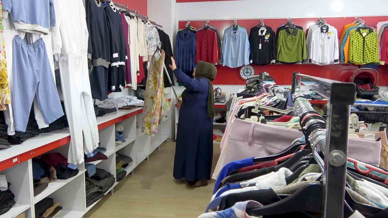 Kırıkkale’nin Bahşılı ilçesinde belediyenin dar gelirli vatandaşlar için hizmete açtığı ’giysibank’ mağazasında bulunan kıyafetler kadınlar tarafından üretiliyor.