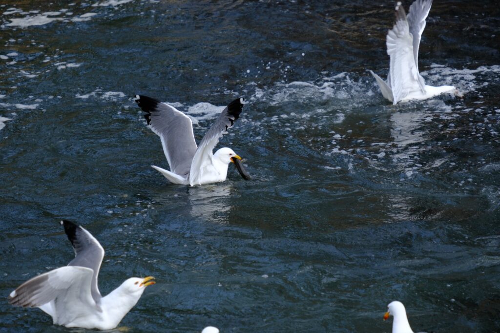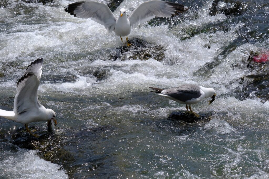 Göçünün en yoğun yaşandığı Erciş Balık Bendi alanında suyun tersine doğru yüzen balıklar martıların hedefi oluyor. Neslini devam ettirmek için tatlı sulara göç eden inci kefali balığını 15 Nisan – 15 Temmuz tarihleri arasında avlamak yasak ancak martılar yasak dışında kalıyor.