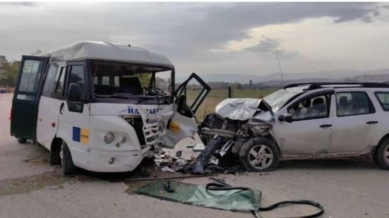 Mahalleden aldığı yolcuları ilçe merkezine götürmek üzere yola çıkan Necati Kahraman (67) yönetimindeki minibüse, karşı yönden gelen Mehmet Furkan Doğan'ın (30) kullandığı cip çarptı.