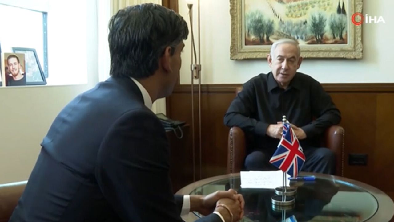 İsrail’deki durumu görüşmek üzere Tel Aviv’e gelen Rashi Sunak, İsrail Cumhurbaşkanı Netanyahu ile birbirlerine sarılması sonrasında görüşmeye geçti. İki liderin, özel görüşmelerinin ardından yardımcılarını daha geniş bir toplantıya davet edeceği öğrenildi.