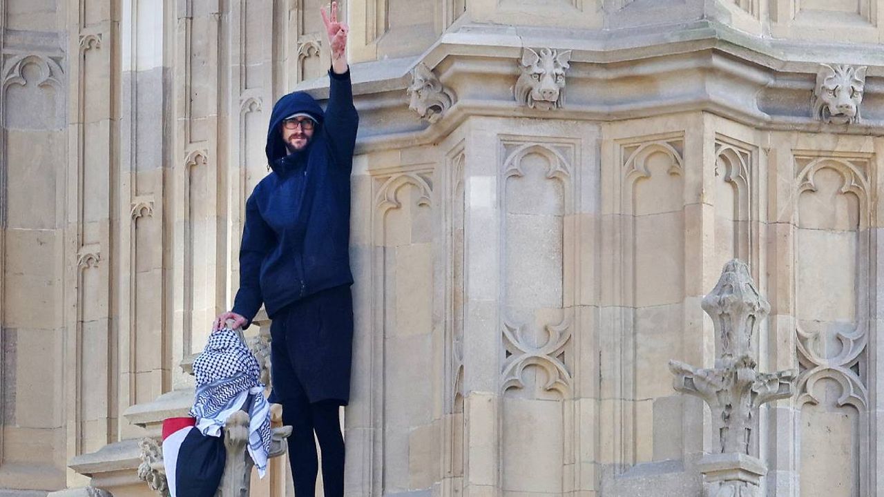 İngiltere'nin simgelerinden başkent Londra'daki Big Ben Kulesi'ne (Elizabeth Kulesi) dün sabah saatlerinde Filistin bayrağı ile tırmanan şahsı ikna çabaları meyvesini verdi. Çıplak ayakla kuleye tırmanan ve kulenin çıkıntısında bekleyen, Filistin bayrağı sallayarak, "Özgür Filistin" sloganları atan şahıs, 16 saatlik eyleminin ardından ikna edilerek aşağıya indi ve İngiliz Polisi tarafından tutuklandı.