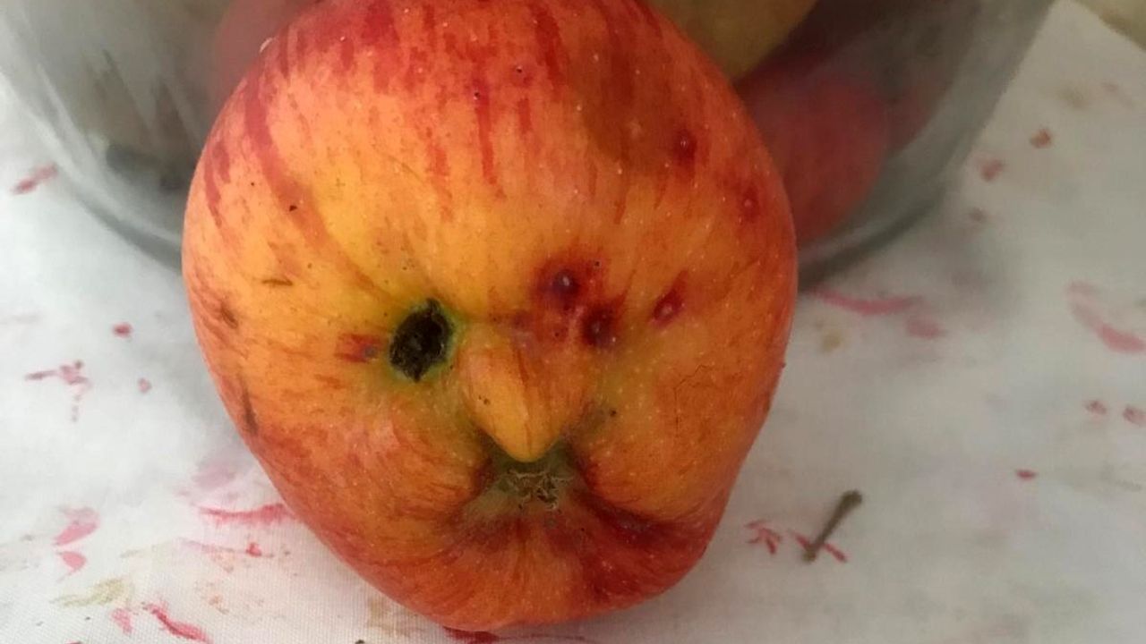 Hakkari’de insan yüzü görünümündeki elma, görenleri hayrete düşürüyor.