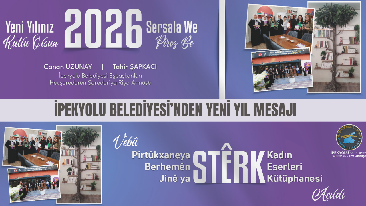 İpekyolu Belediyesi Eşbaşkanları Canan Uzunay ve Tahir Şapkacı, 2026 Yeni Yılı dolayısıyla Türkçe ve Kürtçe kutlama mesajı yayımladı. Mesajda yeni yılın barış, umut ve dayanışma getirmesi temennisinde bulunulurken, kadın odaklı kültürel çalışmalara da dikkat çekildi.