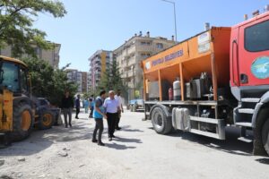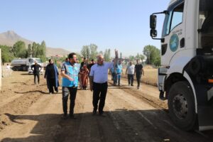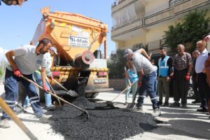 İpekyolu Belediyesi Başkanı Cevdet Altındağ ve Eş Başkan Canan Uzunay İpekyolu’nda yürütülen sıcak asfalt yama ile yeni yol açma çalışmalarına katılarak, ekiplere kolaylıklar diledi.