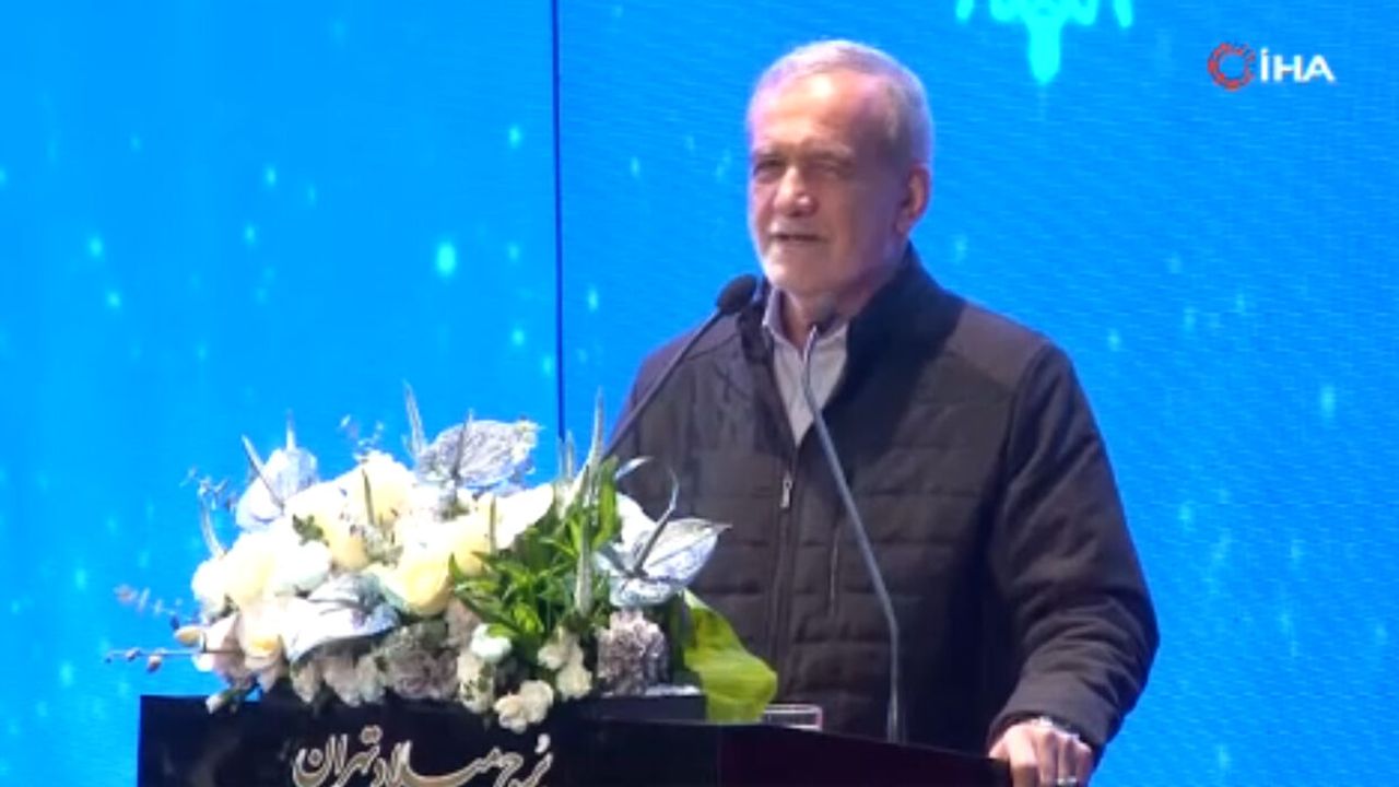 Programda konuşma yapması istenen Pezeşkiyan, kürsüye çıkarak etkinliğe konuşma yapmak için değil, sadece katılmak için geldiğini belirtti.