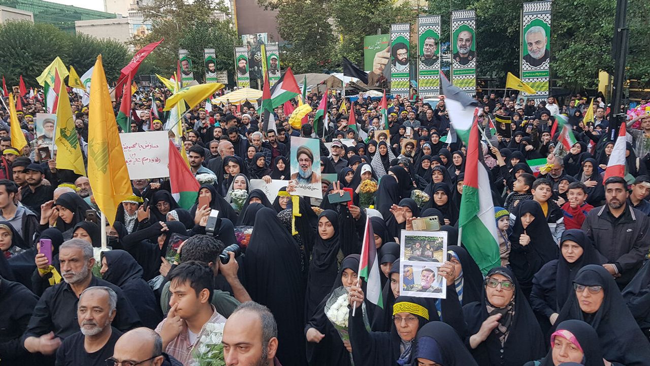 Başkent Tahran’da bulunan Filistin Meydanı’nda toplanan binlerce kişi, İsrail ve ABD’yi protesto etti. Göstericiler, "Kahrolsun İsrail", "Kahrolsun ABD", "İsrail yok olacak, Lübnan kazanacak", “İntikam alınacak” sloganları attı. Lübnan, Hizbullah, Filistin ve Haşdi Şabi bayraklarının dalgalandığı gösteride “Hizbullah yaşıyor”, “Ey yetkililer ABD ile kardeş değiliz ve silahlarımızı bırakmayacağız” yazılı pankartlar ve dövizler taşınırken, bazı göstericilerin ise kefen giymesi dikkat çekti.