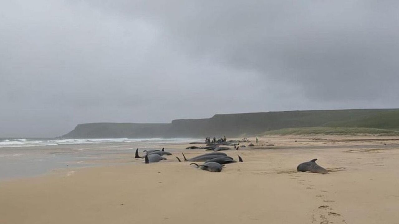 İskoçya'nın Lewis Adası’nda 55 pilot balina karaya vurdu. Dün sabah balinaların karaya vurduğunu gören vatandaşlar durumu hemen yetkililere bildirdi. Hızlıca olay yerine intikal eden görevliler, onlarca balinayı denize döndürmeye çalıştı. Balinaları kurtarmak için saatlerce mücadele veren görevlilerin çabası sonuç vermedi. Görevliler daha fazla acı çekmemeleri için karaya vuran 55 balinaya ötanazi uygularken, yalnızca bir balinanın denize döndürülebildiği bildirildi.
