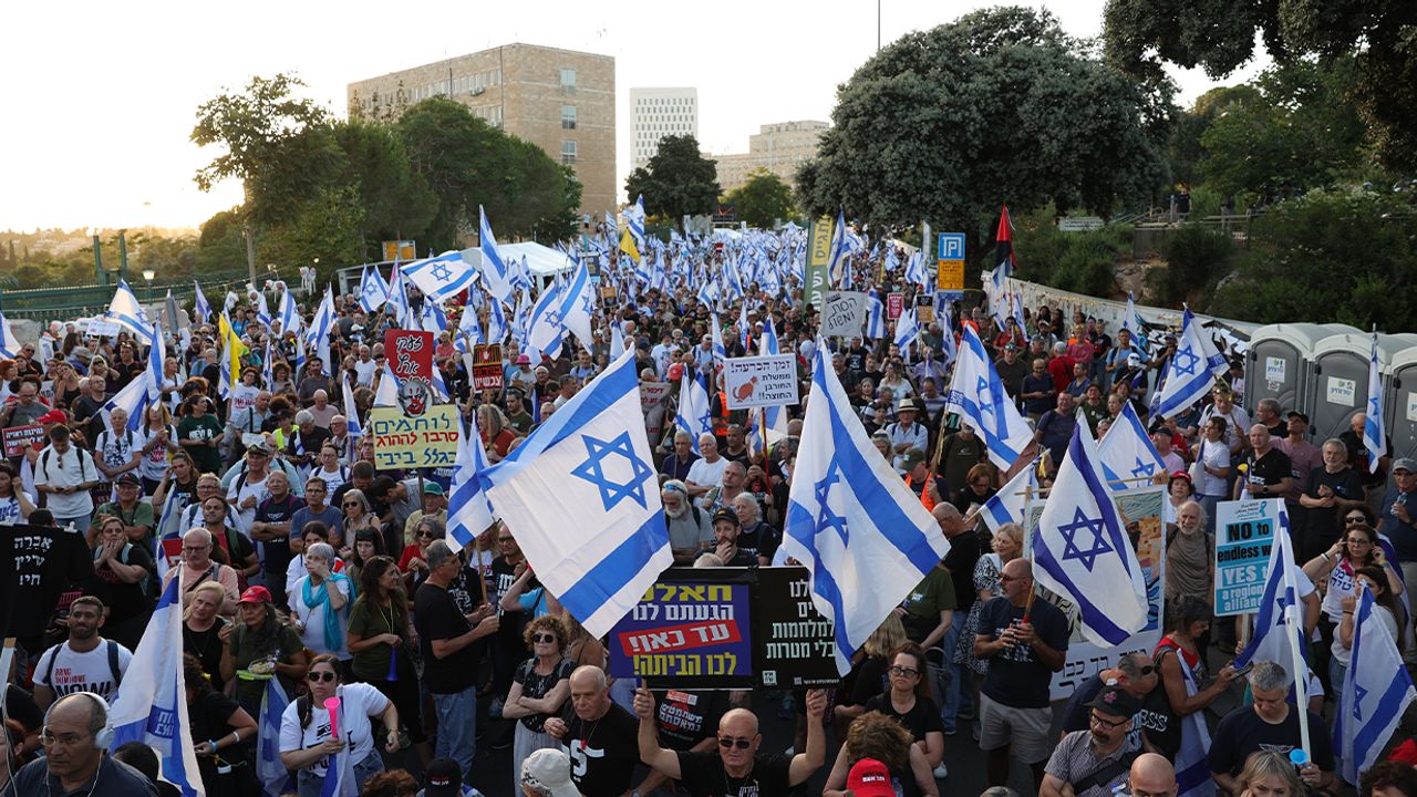 İsrail’de erken seçim ve Gazze Şeridi’ndeki esirlerin geri getirilmesi için hükümete baskılar devam ediyor. İsrail parlamentosu önünde toplanan binlerce kişi, erken seçim çağrısında bulunarak, hükümetten Gazze Şeridi’ndeki esirlerin serbest bırakılması için Hamas’la anlaşmaya varılmasını talep etti. Göstericiler, "Hayır, pervasız bir hükümeti kabul etmeyeceğiz" ve "Faşizme hayır" sloganları attı.