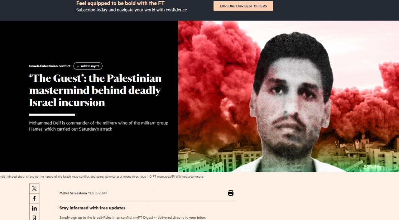 Saldırının arkasındaki isim olarak nitelendirilen Hamas'ın askeri kanadı İzzeddin El Kassam Tugayları'nın liderini mercek alına alan İngiliz Financial Times dikkat çeken bir habere imza attı.