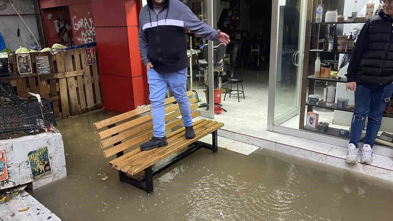 Küçükçekmece Kanarya Mahallesi’nde iş yeri su altında kalan kadın, kovalarla suyu boşalttığı görüldü. Mahalledeki İstasyon Caddesi’nin her yağışta su altında kaldığını belirten esnaf, İstanbul Büyükşehir Belediyesi Su ve Kanalizasyon İdaresine (İSKİ) tepki gösterdi. Bir saatlik yağışta iş yerinin su altında kaldığını belirten Selim Arı, “Burada bir saat içinde yağmur bastı, dükkanı su bastı. Oy zamanı kapı kapı dolaşıyor hepsi, anlatmaya gerek yok. Dükkan su altında kalıyor. Her yağmurda bu oluyor. İSKİ’yi aradık gelen yok, giden yok” dedi.