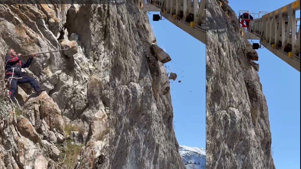 Hakkari’nin Dağgöl Mahallesi’nde yerinden çıkan ve tehlike saçan kaya parçaları itfaiye ekibi tarafından indirildi.