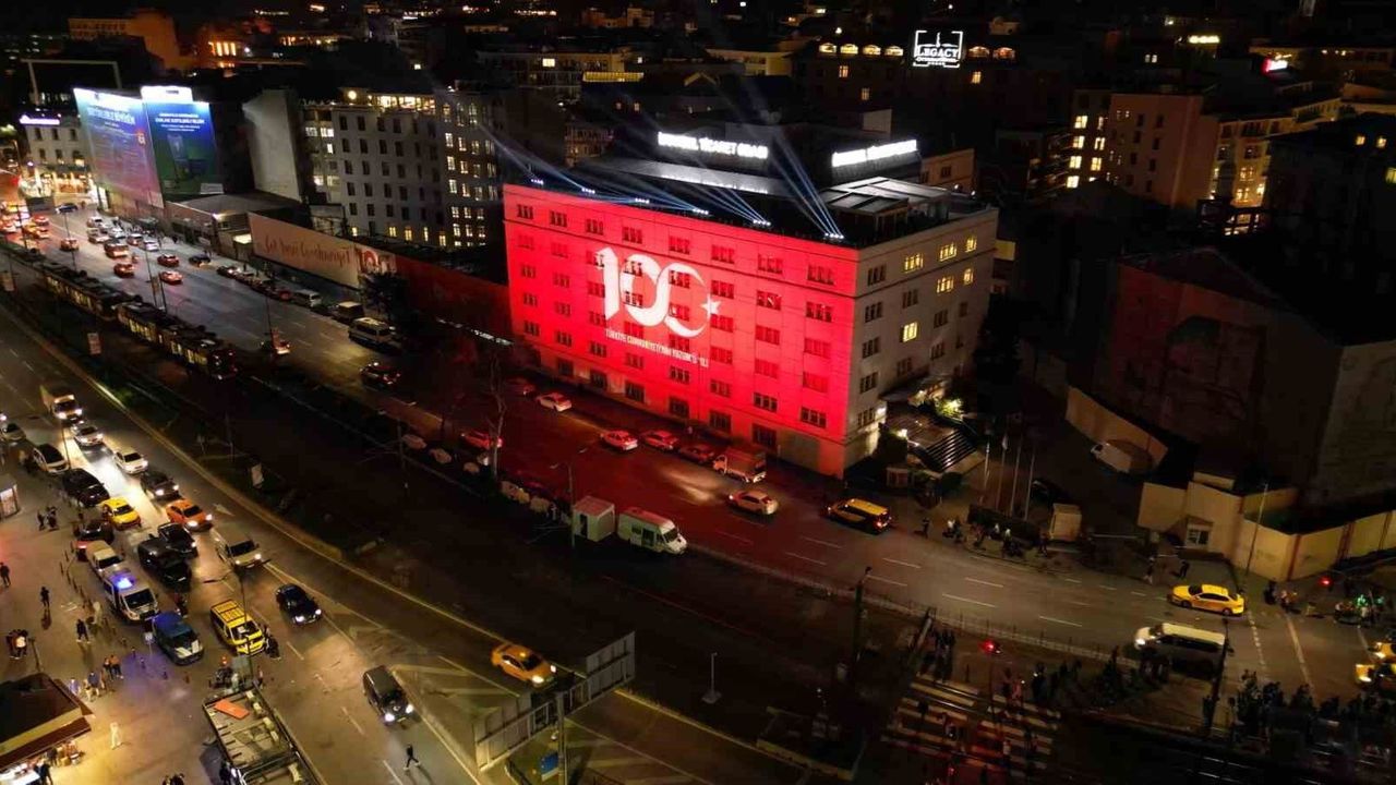 Cumhuriyetin 100. yılı için İstanbul Ticaret Odası’nın (İTO) boğaziçine bakan merkez binası, kırmızı renkle ışıklandırıldı.