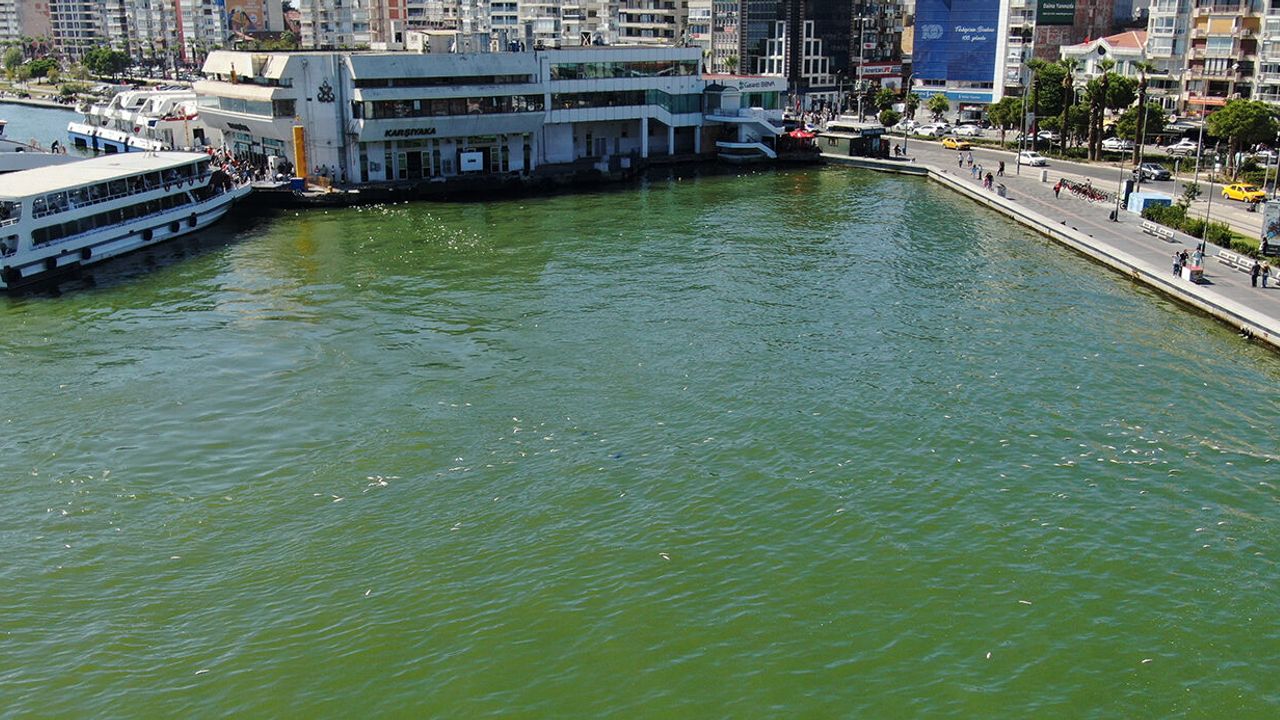 Bugün ise Karşıyaka İskelesi’nde denizin bir bölümünün rengi yeşile dönerken, binlerce ölü balık ise su yüzeyine çıkarak kıyaya vurdu. Deniz yüzeyindeki ölü balıklar dron ile görüntülenirken, İzmir Büyükşehir Belediyesi ekipleri ise hem açık denizde hem de kıyadan ölü balıkları toplama çalışması başlattı. Özellikle kıyıdan toplanan binlerce ölü balık siyah çöp poşetlerine konuldu ve sahil boyunca metrelerce poşetler dolusu ölü balık olduğu görüldü.
