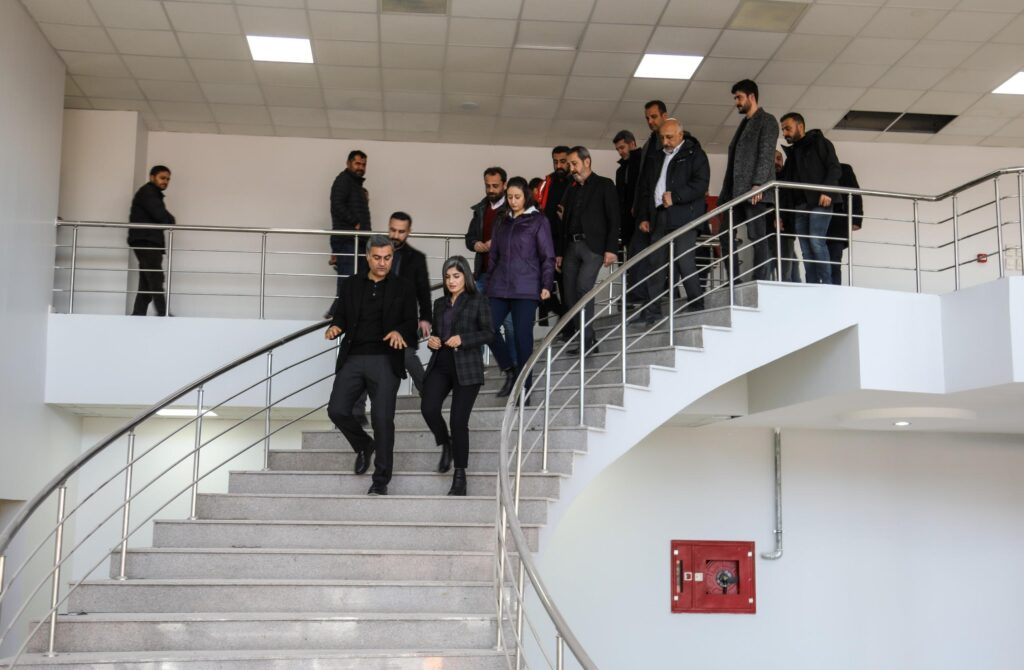 Büyükşehir Belediyesi Eşbaşkanları Neslihan Şedal ve Abdullah Zeydan, Afet Koordinasyon Merkezi’nde incelemelerde bulundu. Genel Sekreter Cavit Tatar, Genel Sekreter yardımcıları, VASKİ Genel Müdürü Şeref Demir ve VASKİ yönetimi ile daire başkanları tarafından karşılanan Eşbaşkanlar, merkezin yeni oluşturulan alanlarını detaylı bir şekilde inceleyerek, çalışmalar hakkında ilgili daire başkanlarından bilgi aldı.