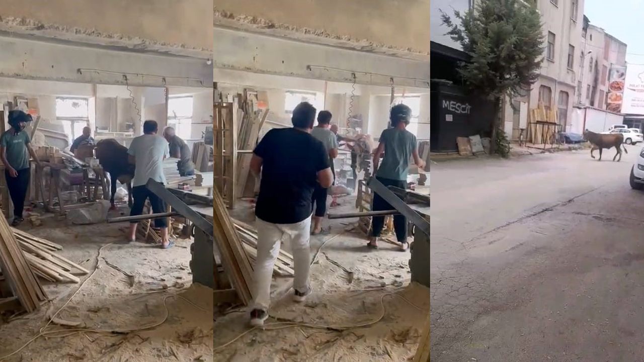 Kaldırımdan yola inerek otomobillerin ortasında koşmaya başlayan inek, trafiği birbirine kattı. Kovalamaca sırasında mobilya atölyesine giren kurbanlık, çevredeki vatandaşlar ve esnafın yardımıyla yakalandı. Kurbanın kaçtığı ve yakalandığı anlar amatör kameraya saniye saniye yansıdı.