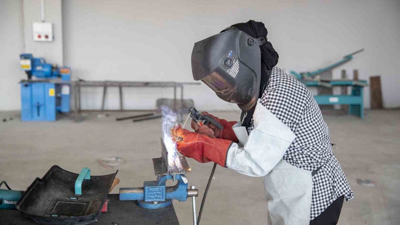 Mersin Büyükşehir Belediyesinin ‘mesleklerin cinsiyeti olmaz’ anlayışıyla hayata geçirdiği meslek edindirme kursları, her geçen gün bir kalifiye eleman daha yetiştirmeye devam ediyor. Sosyal Hizmetler Daire Başkanlığına bağlı olan Tırmıl Sanayi Sitesi’ndeki MERCEK Mesleki Eğitim Merkezinin kaynak atölyesinde eğitim gören tek kadın olan Sevgi Öz, yeteneğiyle kaynak işinin ‘erkek işi değil, ustalık işi’ olduğunu gösteriyor ve mesleklerin cinsiyeti olduğu algısını da bir bir yıkıyor.