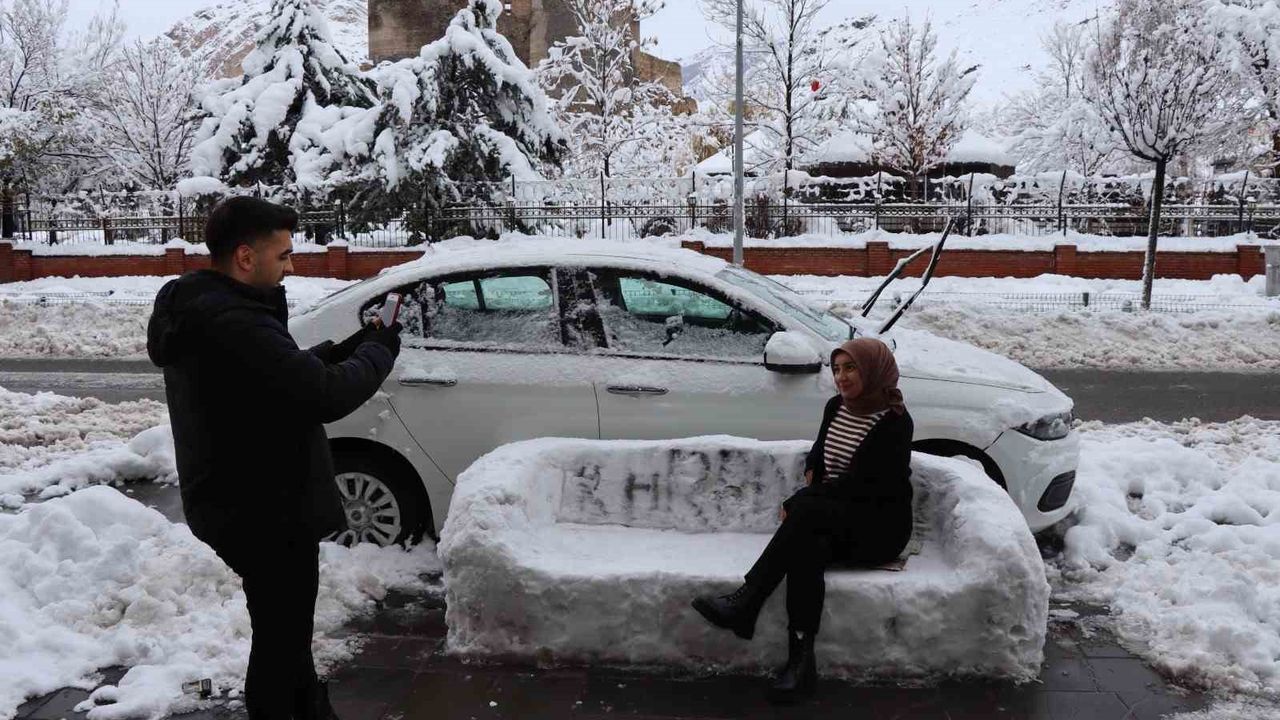 Kar toplamak üzere dışarı çıkan vatandaşlar, ilk başta Çelik’in kardan adam yapacağını düşündü. Ancak, Çelik’in yaptığı şey, herkesin ilgisini çeken bir oturma koltuğu oldu.