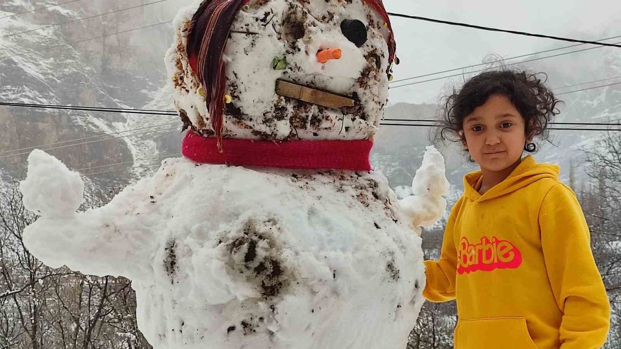Erzurum’un Uzundere ilçesinde beklenen kar yağışı nihayet gerçekleşti. İlçedeki çocuklar, uzun zamandır bekledikleri karı görünce sevinçle dışarı çıkarak bu kez kardan kadın yaptı.