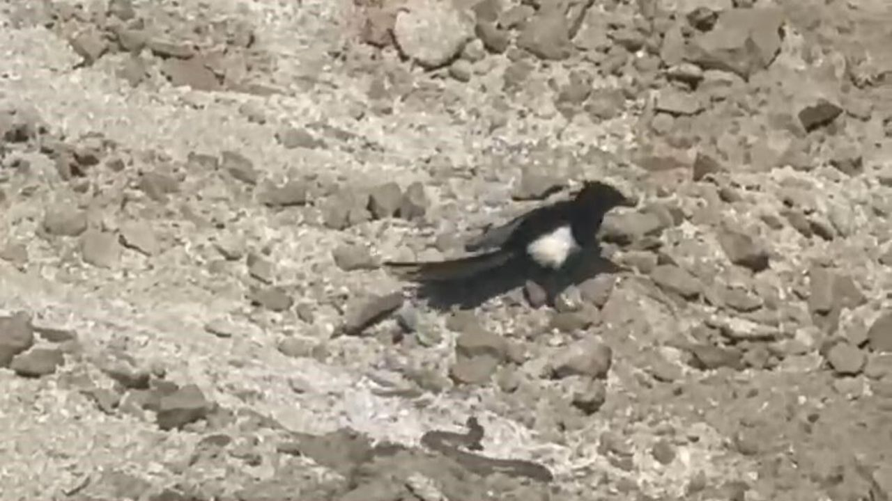 İşçiler tarafından çekilen görüntülerde yılanın açık alanda hareket ettiğini fark eden bir karga ve ardından bir kartal, havadan iniş yaparak av peşine düştü.