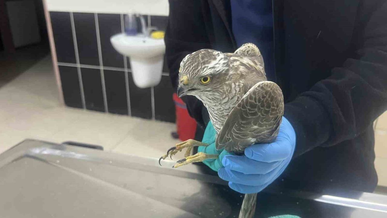 Kars’ta vatandaşlar tarafından bulunan ve güçten düşen Atmaca tedavi altına alındı.