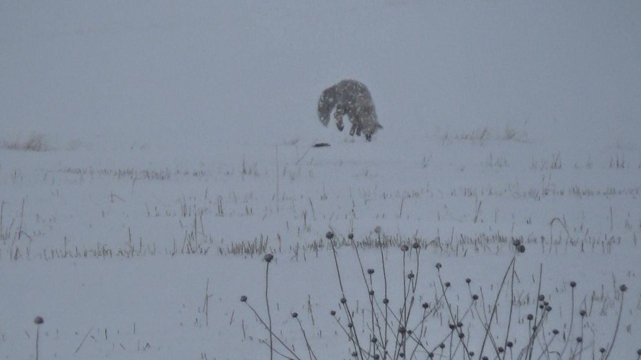Kentte etkili olan kar yağışı ve soğuk hava, yaban hayatını da olumsuz etkiliyor. Yiyecek bulmak için Kars-Çıldır karayolu yakınlarında avlanan kızıl tilkiler, dakikalarca sesleri dinleyerek avını yakalamaya çalışıyor.