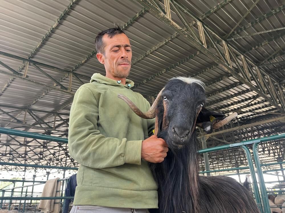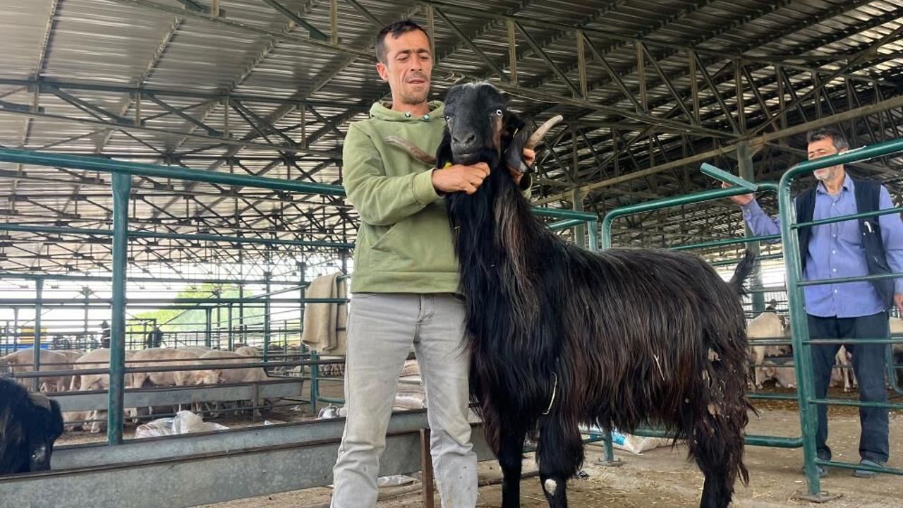 Sahibi tarafından Antalya’dan getirilerek, 3 yıldır bakılan keçi 35 bin liraya alıcısı bekliyor. Canlı olarak 150 kilogram gelen Karaoğlan, pazarın gözdesi durumunda.