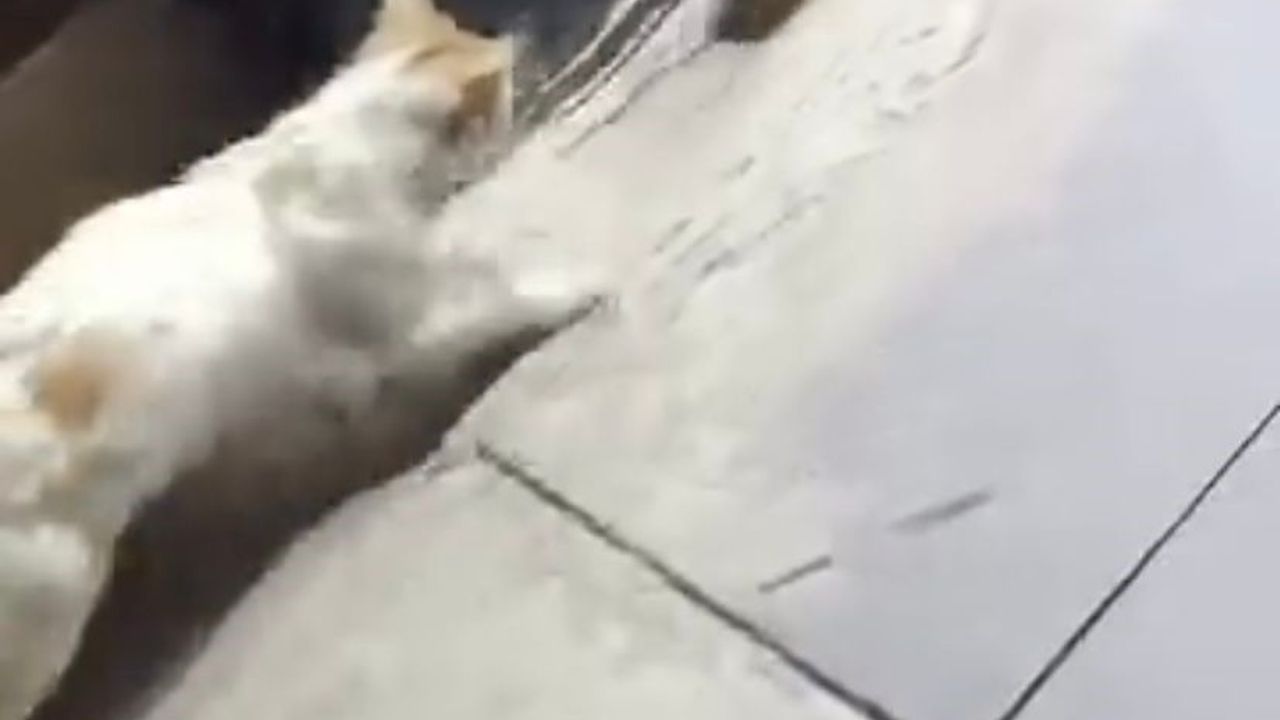 Elazığ Vali Fahribey Caddesinde kedi, fareyi kaldırım arasında sıkıştırdı. Fare kaçacak yer bulamazken, kedi bir süre fare ile oynadı. Doğası gereği fareyi alıp yemesi gereken kedi, patisi ve ağzıyla fareye temas etmeye çalıştı. Bir yandan etrafa bakınan kedi, fare ile oyun oynamayı sürdürdü.
