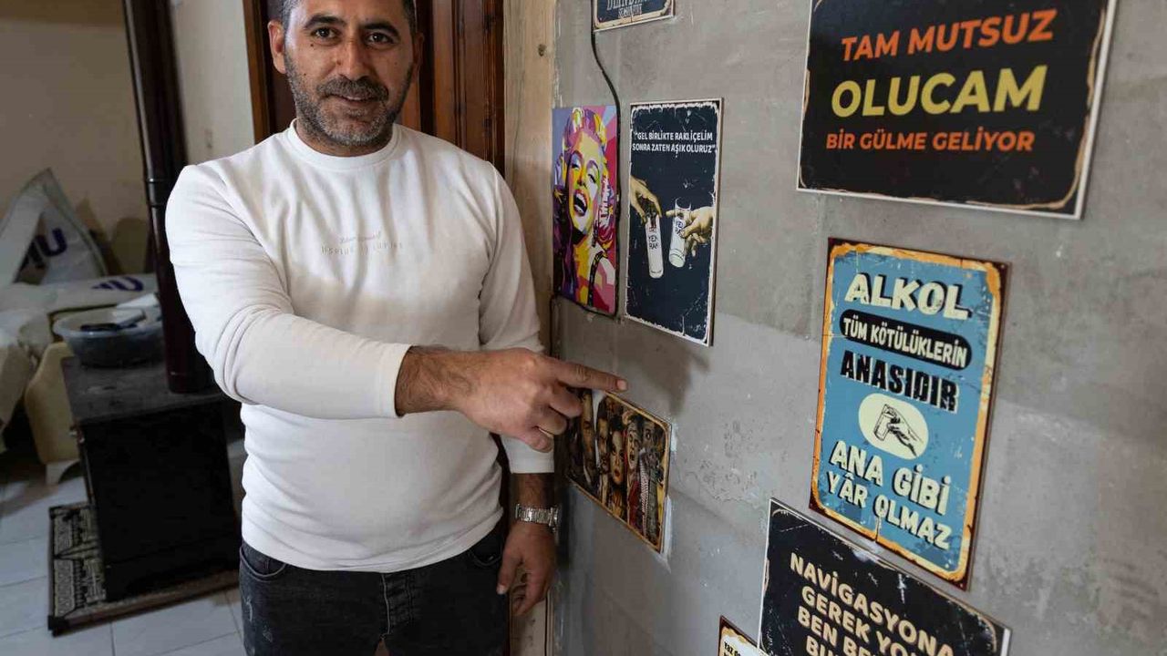 Evine "Alkol tüm kötülüklerin anasıdır" yazısı asmış
