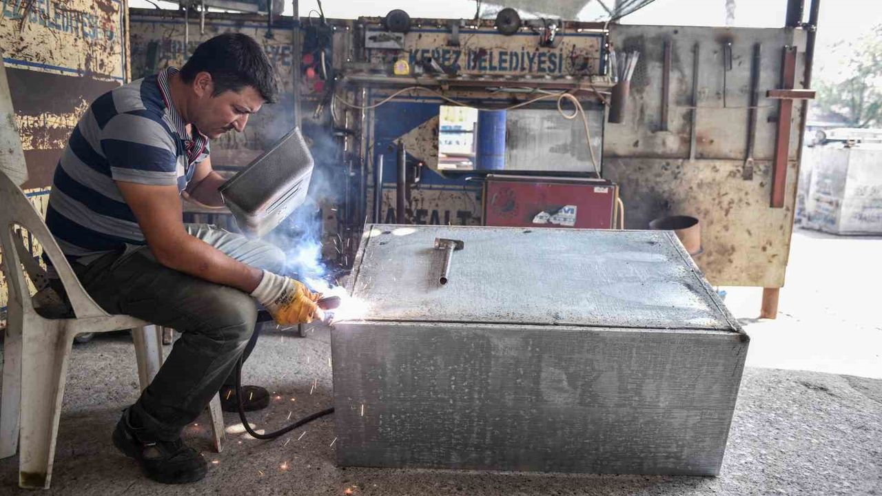Belediyenin çöp konteyner üretimi yaparak, önemli bir ekonomik tasarrufa imza attığının da altını çizen Tütüncü, “çöp koyternerlerinin belli bir kullanım ömrü var. Atıklardan dolayı çürümelerin yaşandığı koyternerlerin yenilenmesi gerekiyor. Bu yenilenmeyi de kendi tesisimizde yaparak, önemli bir tasarruf sağlamış oluyoruz.” ifadesini kullandı. Yeni atölye binasında, standart çöp konteynerleriyle birlikte sanayi sitelerinde ve kurban kesim alanlarında kullanılan 4 bin litre kapasiteli çöp kazanlarının da üretimi yapılacak. Temizlik İşleri Müdürlüğü’nün yeni üretim tesisinde, sıfır atık çerçevesinde geri dönüşebilen atıklar için de farklı ölçü ve ebatlarda toplama ekipmanlarının üretilmesi de planlanıyor.