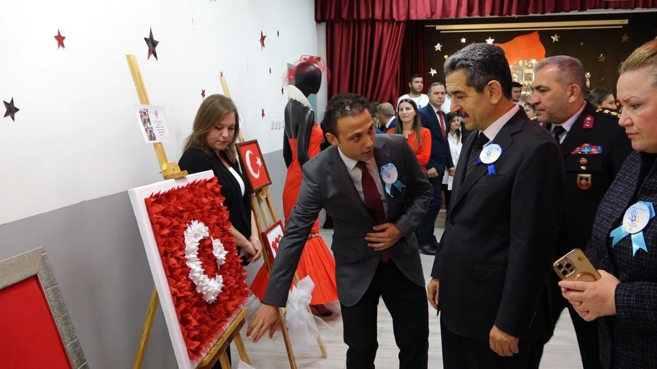 Kırklareli’nde down sendromlu öğrenciler tarafından hazırlanan ‘bayrak’ sergisi törenle açıldı.