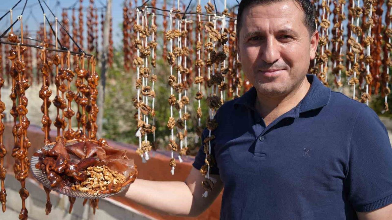 Bağ bozumunun ardından toplanan üzümlerin suyunu kazanlarda kaynatarak pekmez, pestil ve sucuk yaptıklarını söyleyen Uğur Özmaya, "Eskiden annelerimiz, üzümden elde edilen suyu kazanlarda kaynatılarak pekmez haline getirerek kış aylarında yemek için sucuk ve pestil yaparlardı. Şimdi ise artan nüfustan dolayı daha çok talep gördü ve biz de ticaretine adım attık. Güneş altında kuruyan sucuklar, kent merkezindeki işyerlerine veriyoruz. Diğer bölgelerden arayan kişilere ise kargo yaparak gönderiyoruz. Eylül ayında zor şartlarda toplanan üzümler, makinada çekildikten sonra süzdürüyoruz ve daha sonra nişasta ile karıştırılıp büyük ocaklarda hazır hale getiriliyor ve daha sonra hapse dediğimiz ürün ortaya çıkıyor. İplere tek tek nakış gibi işlediğimiz badem, fıstık ve cevizi hapse ile birleştirerek güneş altında 3 ile 4 gün bekleterek kurumasını bekliyoruz’’ diye konuştu.