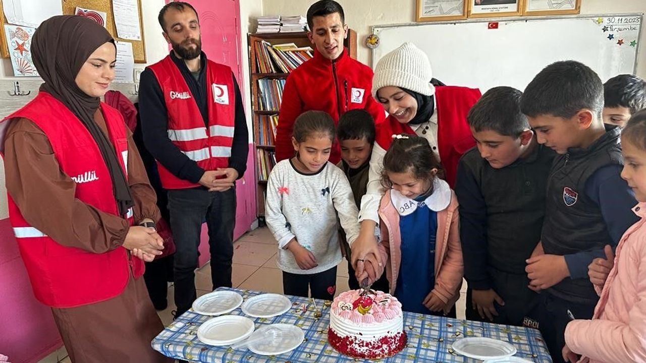 Okulda büyük bir sürprizle karşılaşan Elif Sağlam, Kızılay ekibinin sınıfına girerek doğum gününü kutlamasına çok sevindi. Arkadaşlarıyla birlikte pastasını kesen ve hediyelerini alan öğrenci, Kızılay ekibine teşekkür etti. Kızılay ekibi de öğrencilerle bir süre sohbet edip, oyunlar oynadı.