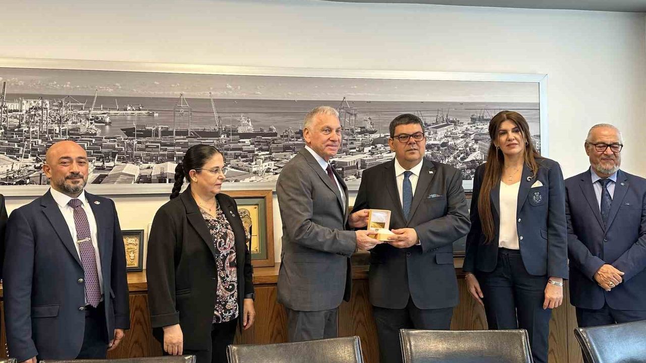 Bir dizi temas ve inceleme için Mersin’e gelen Kuzey Kıbrıs Türk Cumhuriyeti (KKTC) Maliye Bakanı Özdemir Berova, beraberinde KKTC Mersin Başkonsolosu Zalihe Mendeli, bakanlık yetkilileri ve Kıbrıs Türk Ticaret Odası temsilcileri ile birlikte Mersin Deniz Ticaret Odası’nı ziyaret etti. MDTO Meclis Başkanı Jozet Atat, Yönetim Kurulu Başkanı Cihat Lokmanoğlu, Meclis Başkan Yardımcısı Ayla Harp ve yönetim kurulu üyelerince karşılanan Kıbrıs heyetine, bölgedeki limanlara ve deniz ticaretine ilişkin bilgiler verildi. Toplantıda, KKTC ve Mersin limanlarında yaşanan sorunlara ilişkin görüş alışverişinde bulunuldu.
