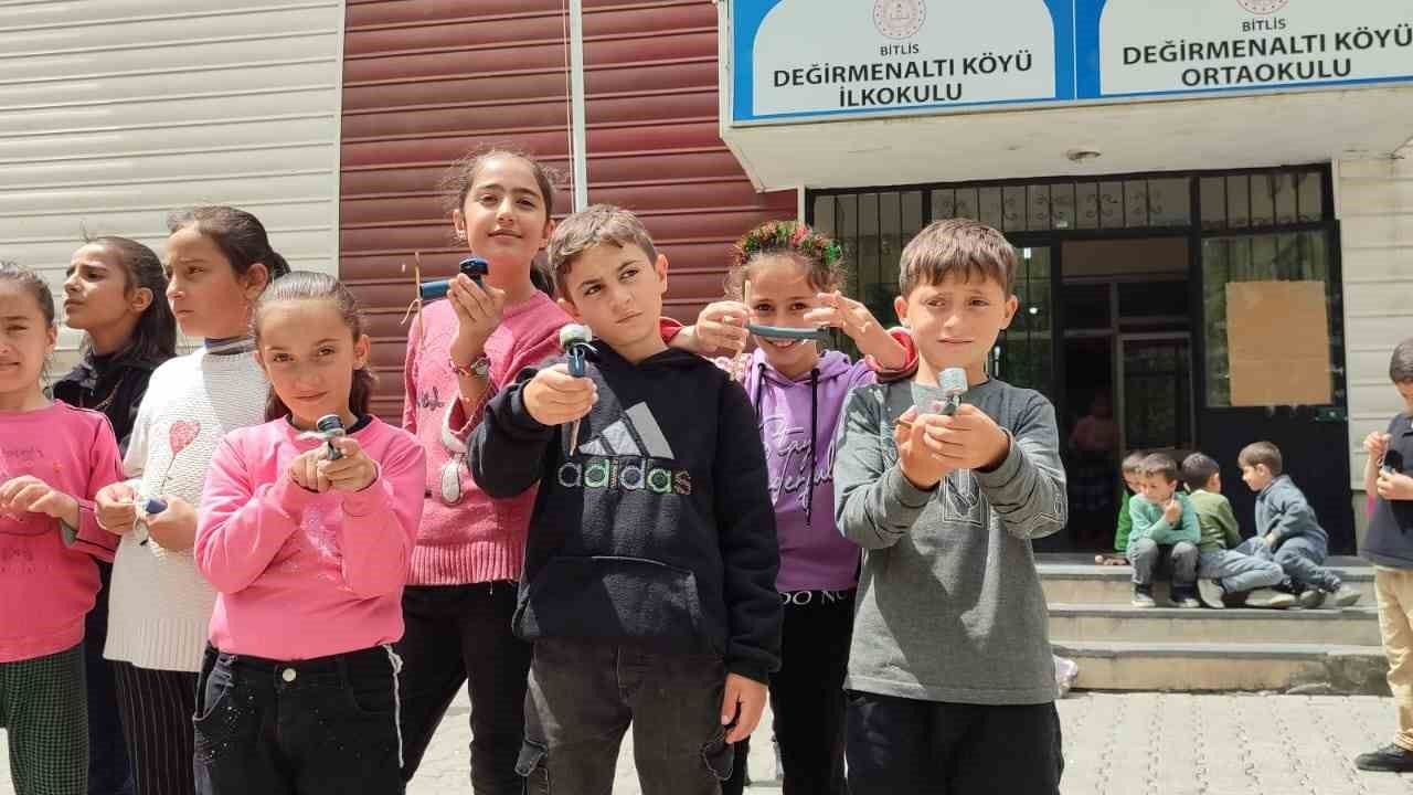 Köyde pet şişe kapağı, çivi, ip, bant, plastik boru, ağaç parçaları ve yapıştırıcı kullanarak yaptıkları kendilerine özgü topaçlarla yarışan öğrenciler doyasıya eğlendi. Okul öğretmen ve idarecileri tarafından bu yıl ilki düzenlenen topaç yarışmasına öğrenciler önceden yaptıkları topaçları ile katıldı. Kıyasıya geçen mücadelede yaptıkları topaçları yarıştıran öğrenciler hem eğlendi hem de yarıştı.