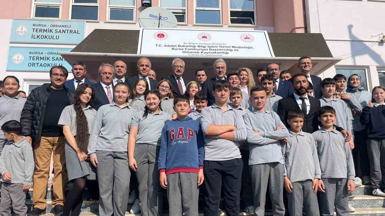 Bursa Cumhuriyet Başsavcılığı tarafından adliye envanterinde bulunan 15 bilgisayar ile dağ ilçelerinden Orhaneli’deki bir köy okuluna bilişim sınıfı kuruldu. Bazıları ilk defa bilgisayar gören çocuklar büyük sevinç yaşadı. Bursa Valisi Erol Ayyıldız, eğitimde hedef olursa mükemmeliyetçiliğe yolculuğun kolay olduğunu belirterek, "Bilişim sınıfı da sosyal sorumluluk olarak buna hizmet edecek" dedi. Bursa Cumhuriyet Başsavcısı Ramazan Solmaz, toplumsal sorumluluğun ve kamu kaynaklarını verimli kullanmanın güzel bir örneğini sergilediklerini ifade etti. Cumhuriyet Başsavcılığı bir süre önce de dağ ilçelerinden Keles’te 5 okula 64 bilgisayar ile bilişim sınıfları kurmuştu.