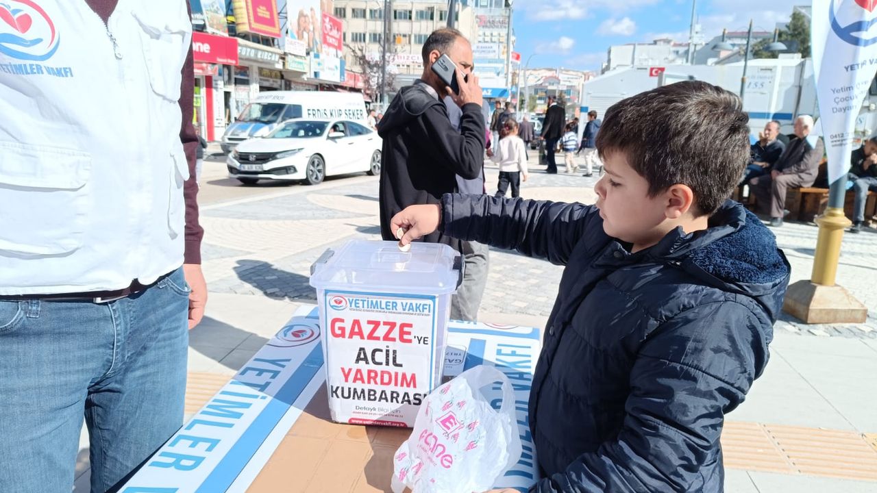 Van’da yaşayan Ensar Âlim Çiçek (9) biriktirdiği parayı Gazze’ye destek olmak amacıyla Yetimler Vakfı’na bağışladı.
