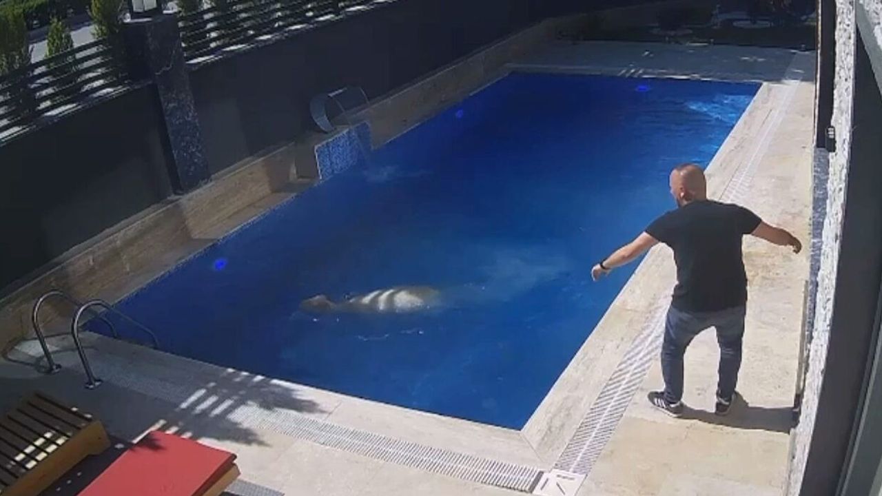 O sırada kurtulan koç, kaçmaya başladı. Bir villanın bahçesine giren koç, havuza atlayarak yüzmeye başladı. Sedat Kasap, havuza atlayıp kısa süreli yüzdükten sonra havuz kenarına gelen koçu, eliyle dışarı çıkarıp yakaladı.