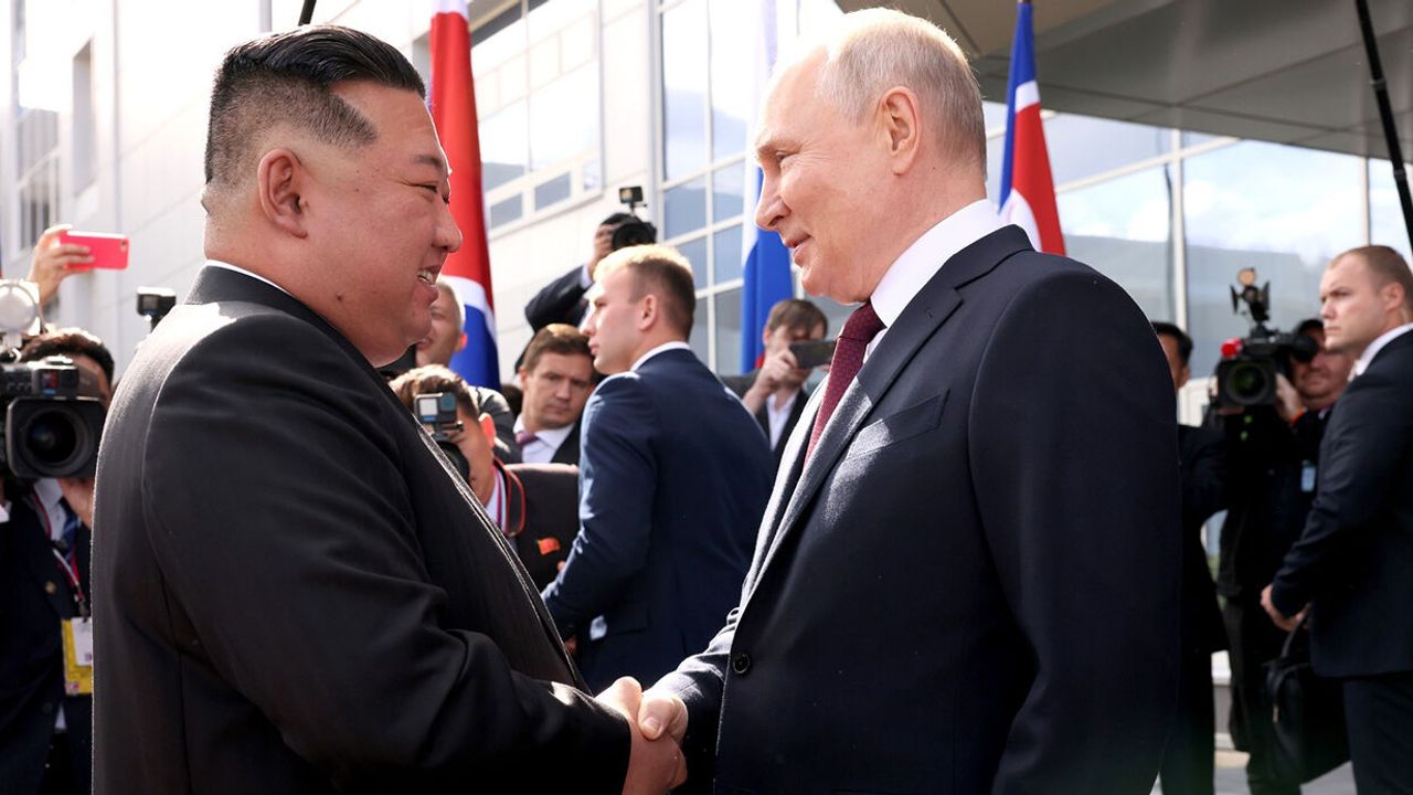 Rusya Devlet Başkanı Vladimir Putin, Kuzey Kore lideri Kim Jong-un ile Rusya'nın Amur bölgesindeki Vostoçni Uzay Üssü'nde bir araya geldi. Liderler, yeni inşa edilen üssün uzay roketi montaj atölyesini birlikte inceledi. Rusya Federal Uzay Ajansı (Roscosmos) Başkanı Yuriy Borisov ve Uzay Altyapı Operasyon Merkezi Genel Müdürü Nikolay Nesterçuk, uzay üssü ile ilgili Kim ve Putin’e bilgi verdi.