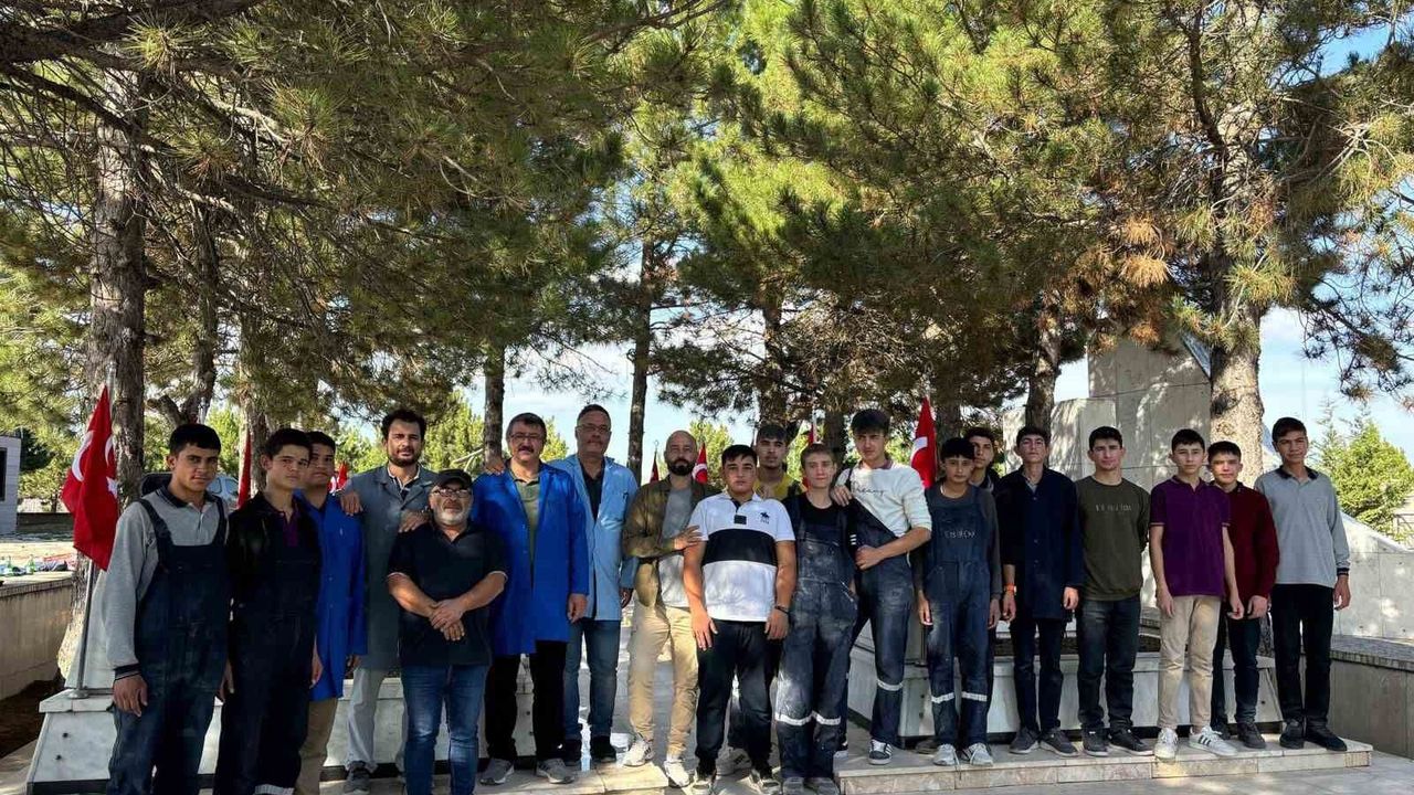 Afyonkarahisar İscehisar Hacı Süleyman Selek Mesleki ve Teknik Anadolu Lisesi öğrencileri Makine ve Elektrik Bölümü öğretmenleri eşliğinde ziyaret ettikleri şehitliğin bakımını yaptılar.