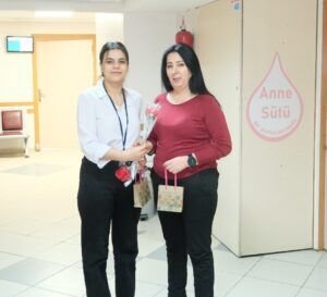 Kadınlara sağlık ve mutluluk temennisinde bulunan Doğan, kadın personellerine de çiçek ve hediye vermeyi ihmal etmedi.