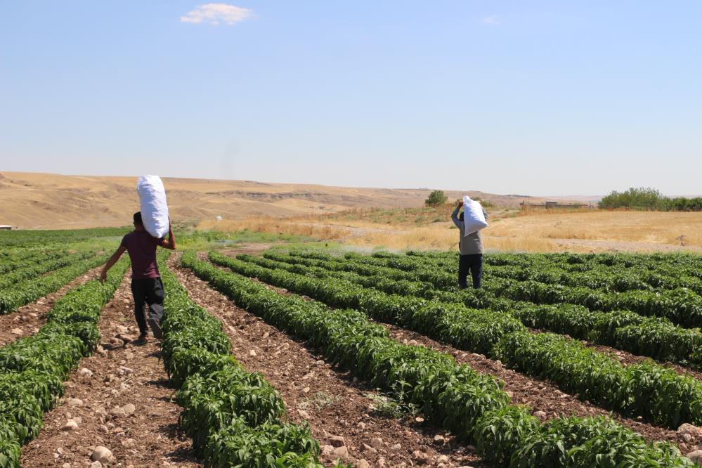 60 kişiye ekmek kapısı olan Parçacı, 50 dönüm araziye temmuz ayında kavurucu sıcaklıklarla birlikte ektiği biberlerin ilk hasadını yaptı. İşçileriyle birlikte her gün sabah 06.00'da iş başı yapan Parçacı, saat 16.00'ya kadar 45 derece hava sıcaklığında para kazanıyor.