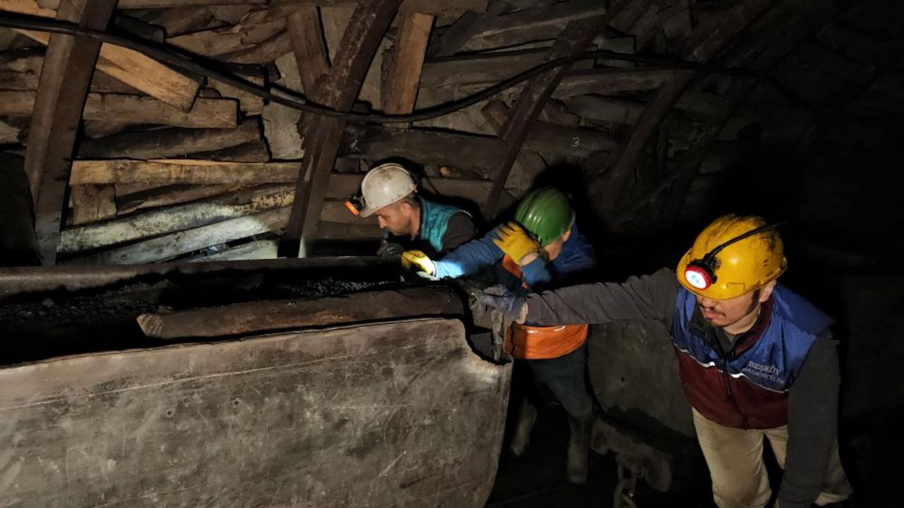 Yapılan sahurun ardından ellerini semaya açarak dua eden madenciler, oruca niyetlendikten sonra kömür kazmaya devam etti.