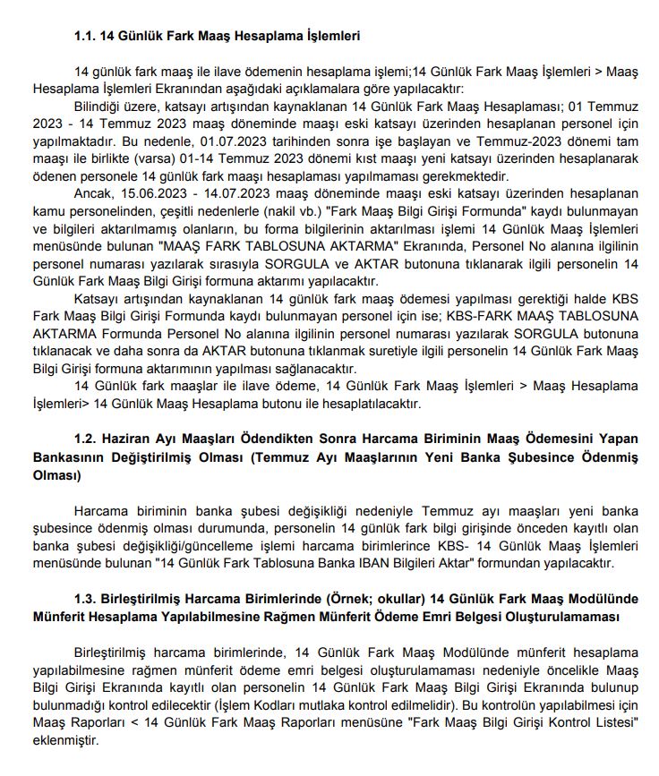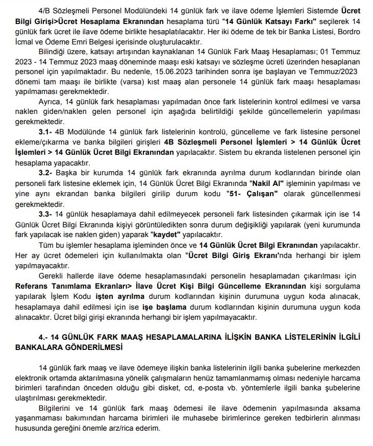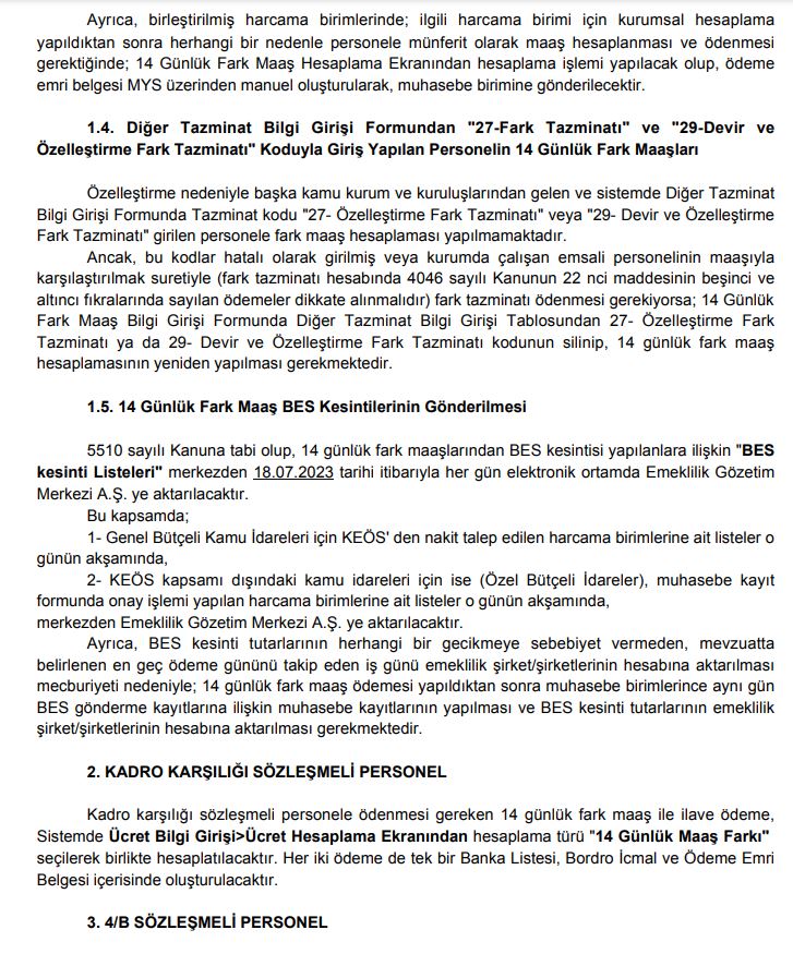 Hazine ve Maliye Bakanlığı Muhasebat Genel Müdürlüğü memurların 14 günlük maaş farklarına ilişkin duyuru yayımladı.