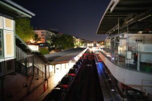 Türkiye’nin dev ulaşım projelerinden Marmaray, gündüz saatlerinde yaklaşık 600 bin İstanbullunun ulaşımını sağlıyor. Gece olduğunda ise şehrin altında bir lojistik hattına dönüşüyor. Gece saatlerinde ulusal ve uluslararası yük trenlerinin geçişine imkan tanıyan hat, İstanbul Boğazı’nın altından kesintisiz taşıma sağlıyor. Bu fonksiyonu en net şekilde gözler önüne seren görüntü, gece saatlerinde gerçekleşen araç taşımacılığıyla havadan kaydedildi. Bakırköy İstasyonu’ndan geçen araç yüklü tren havadan görüntülendi. Çekilen görüntülerde vagonların altlı üstlü sıfır araçlarla dolu olduğu dikkat çekiyor. Bu araçlar, Marmaray’ın tüp geçidini kullanarak Boğaz’ın altından Asya Yakası’na geçiyor ve yolculuklarına devam ediyor.