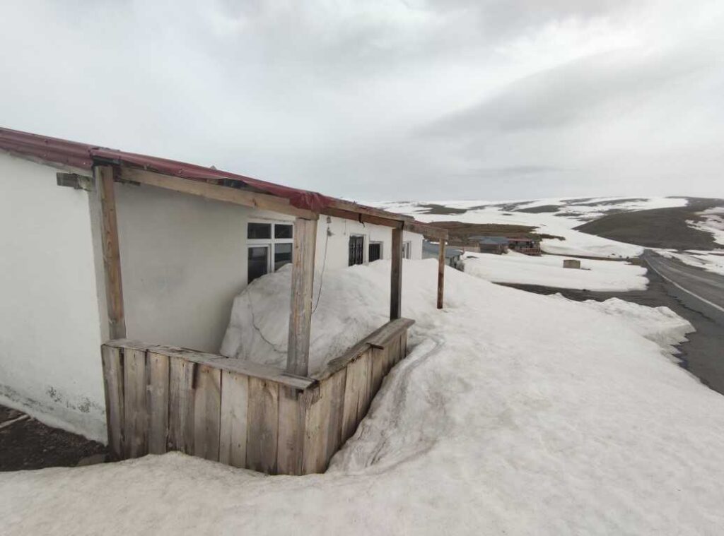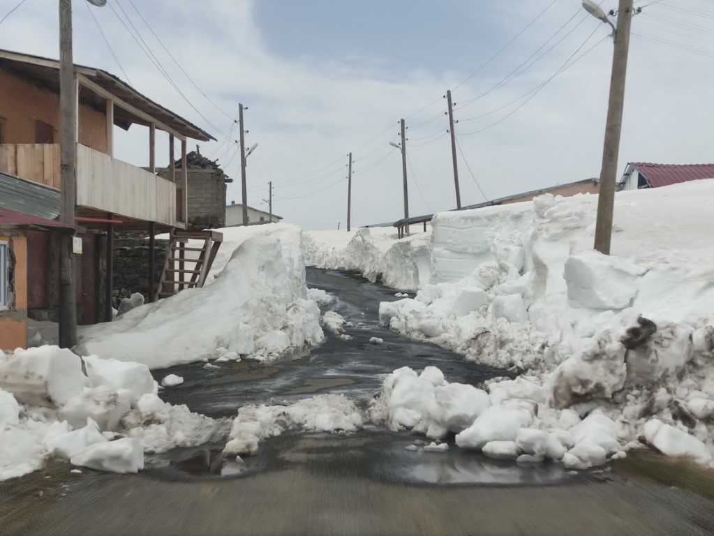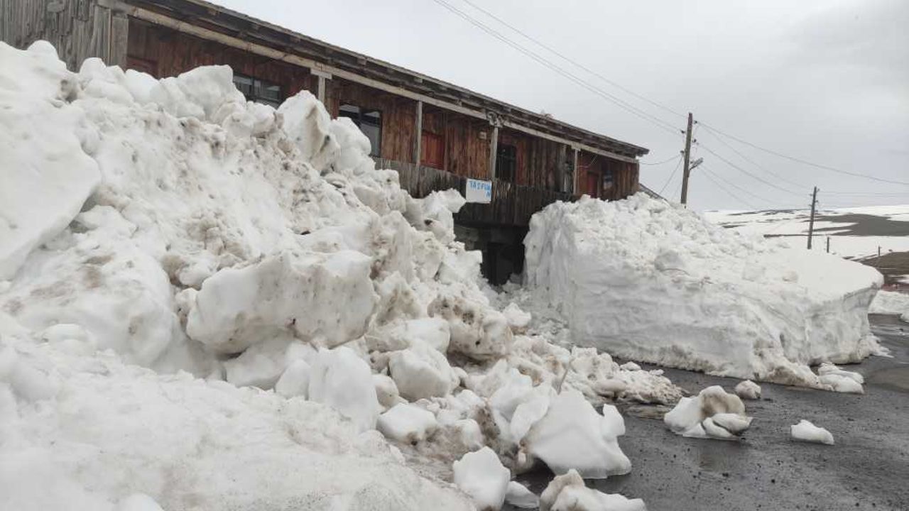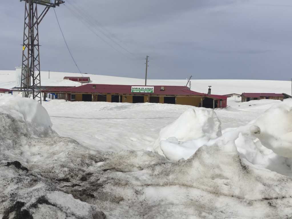 Ardahan ile Artvin'in Ardanuç ilçesi sınırında yer alan ve yazın yaylacıların kullandığı yaklaşık 300 haneli, 2 bin 581 rakımlı Bülbülan Yaylası mayıs ayı sonu olmasına rağmen kar altında.