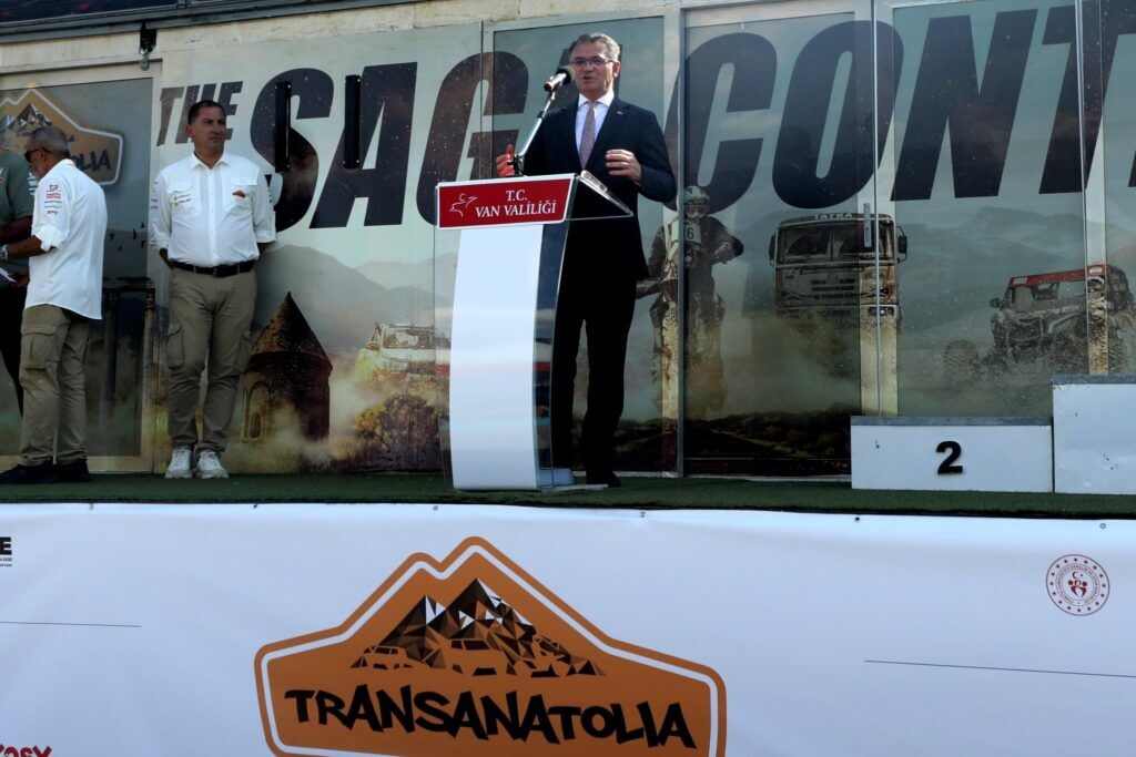 Sporcuların tanıtılıp günün anısına madalyalarının verilmesinin ardından konuşan Van Valisi Ozan Balcı, “TransAnatolia Rally Raid’in finişini Van’da yapmak bizi çok mutlu etti. Çok güzel bir etkinlik oldu. Bu etkinlik ilimize enerji verdi. Biz bu etkinliğin gelecek yılda da ilimizde yapılmasını bekliyoruz. Van kadim bir kent, Vanlılar asil ve misafirperverdirler. Bu etkinliğin Van’da yapılması için İçişleri Bakanımız Sayın Ali Yerlikaya’nın özel desteği oldu. Kendisine müteşekkir olduğumuzu ifade etmek istiyorum. Emeği geçen herkese çok teşekkür ediyorum. Şunu ifade etmek istiyorum. Bu sporcularımız ‘14 farklı ilden toprak, çamur getirdik’ diyorlar. Biz şöyle inanırız. Memleketi, milleti sevmek, sadece insanlarıyla sevmek değildir. Bir memleketi milleti sevmek, dağlarıyla taşlarıyla, ormanlarıyla, akarsularıyla, gölleri, ırmakları, nehirleri, manileri, türküleri, ninnileriyle ve sizin ifadenizle tozuyla çamuruyla sevmektir.” dedi.