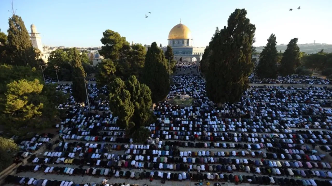 Binlerce Filistinli ve yabancı Müslüman, bayram namazı için sabahın erken saatlerinde Mescid-i Aksa'ya akın etti. Namazın ardından bayramlaşan Filistinliler birbirlerine şeker, helva ve tatlı ikramında bulundu. Gençler de bayram namazını kılmak için aileleriyle Aksa'ya gelen çocuklara hediyeler dağıttı.