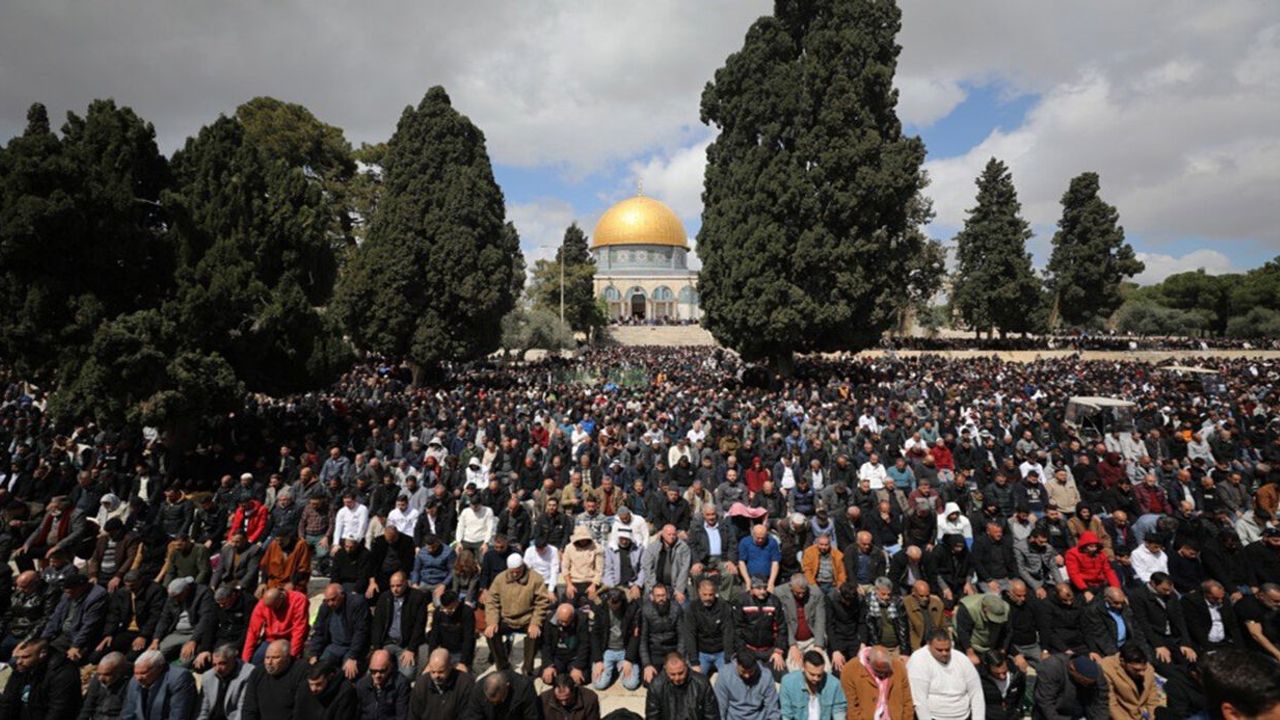Binlerce Filistinli sabah erken saatlerinden itibaren İsrail’in kurduğu askeri kontrol noktalarını geçerek Mescid-i Aksa’nın yolunu tuttu. Ancak İsrail güçleri, Batı Şeria'dan gelenlerin Kudüs'e girişlerinde sıkı kısıtlamalar uyguladı.