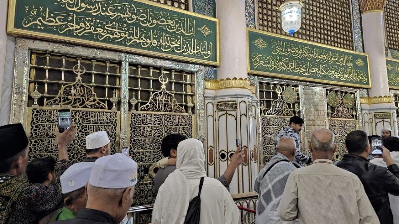 Binlerce kişi, 41 kapısı, 2 bin 540 penceresi ve 10 bin 520 kolonun bulunduğu Mescid-i Nebevi'de ibadette bulundu, Hz. Muhammed'in (Sallallahü teala aleyhi ve sellem) kabrinde dua etti.